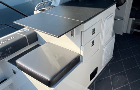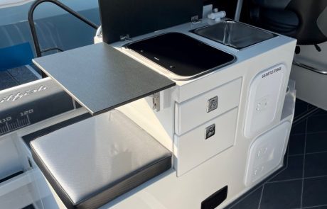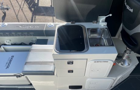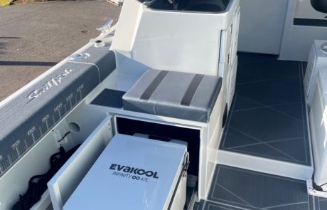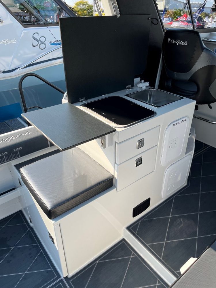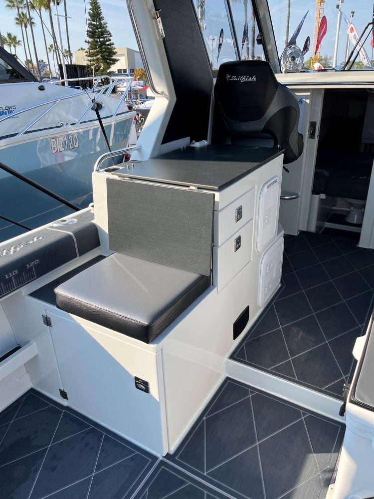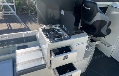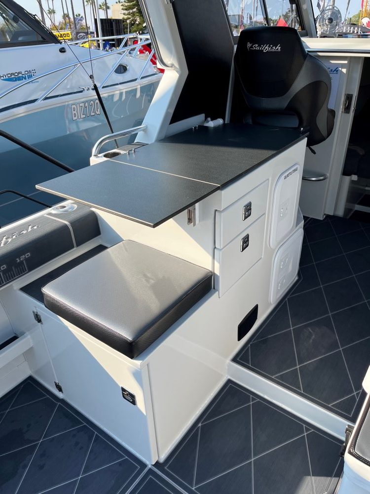 - Custom Sailfish cutting board with 2 x bait bins, line spooler, LED light and saltwater tap for washdown